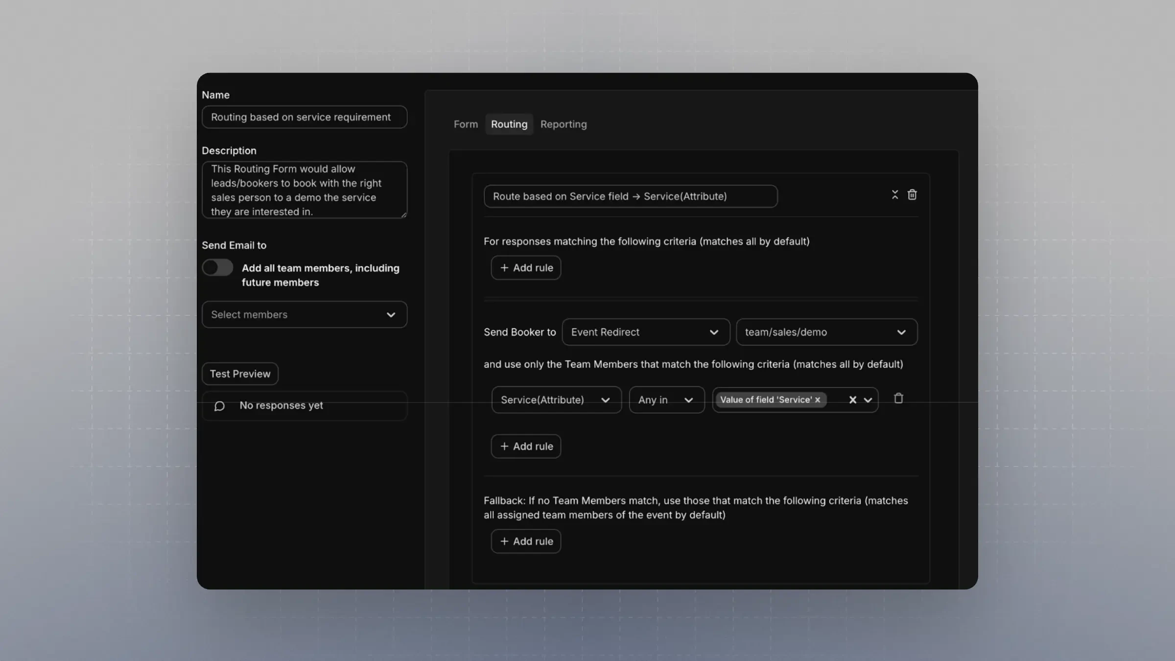 This guide walks you through how to set up a Round Robin Team Event that routes bookings to team members based on attributes using Cal.com’s Routing Forms.